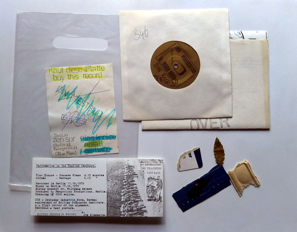 1979年にベルリンで自主制作された前代未聞のレコードがあります。手さげの透明ビニル袋の中にはシングルレコードと、さまざまなゴミが封入され、いちど見たら忘れられないほどのインパクトとコンセプトを持った伝説のタイトル、それがディン・A・テストビルトのデビュー・シングル「廃棄物」(原題:Garbage/Abfall)です。